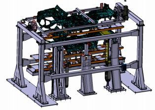 自制升降滾床+轉(zhuǎn)轂夾具:實(shí)現(xiàn)正反面螺柱焊接,適用于低 JPH工位 。對(duì)于高JPH工位,轉(zhuǎn)轂夾具改為雙面夾具;