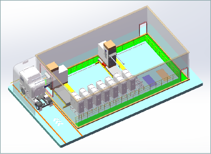 智能換電機(jī)器人、電池專用吊具、車載電池自動定位系統(tǒng)、車輛導(dǎo)向、充電底座、消防系統(tǒng)、道閘、顯示大屏、管控系統(tǒng)、監(jiān)控等。