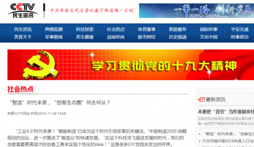11月26日,中央電視臺民生資訊數(shù)字頻道唯一官網(wǎng)——CCTV民生網(wǎng)刊發(fā)題為《“智造”時代來襲,“創(chuàng)客生態(tài)圈”何去何從?》...